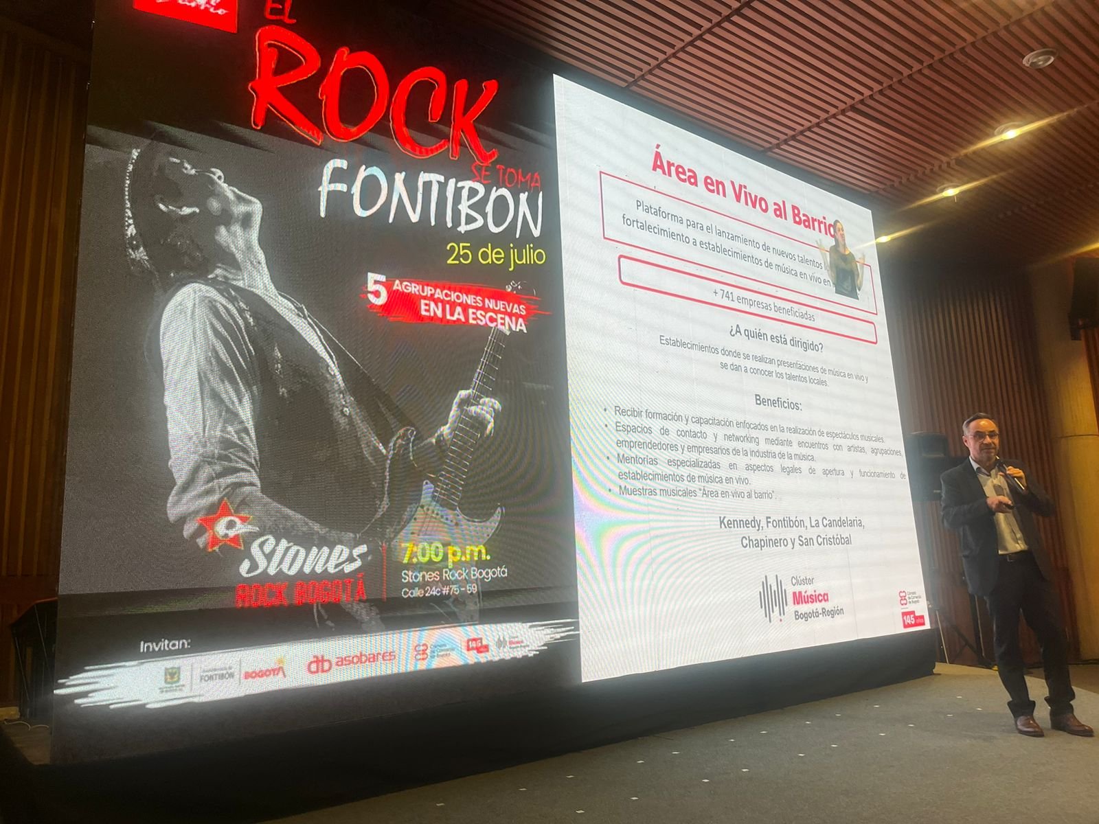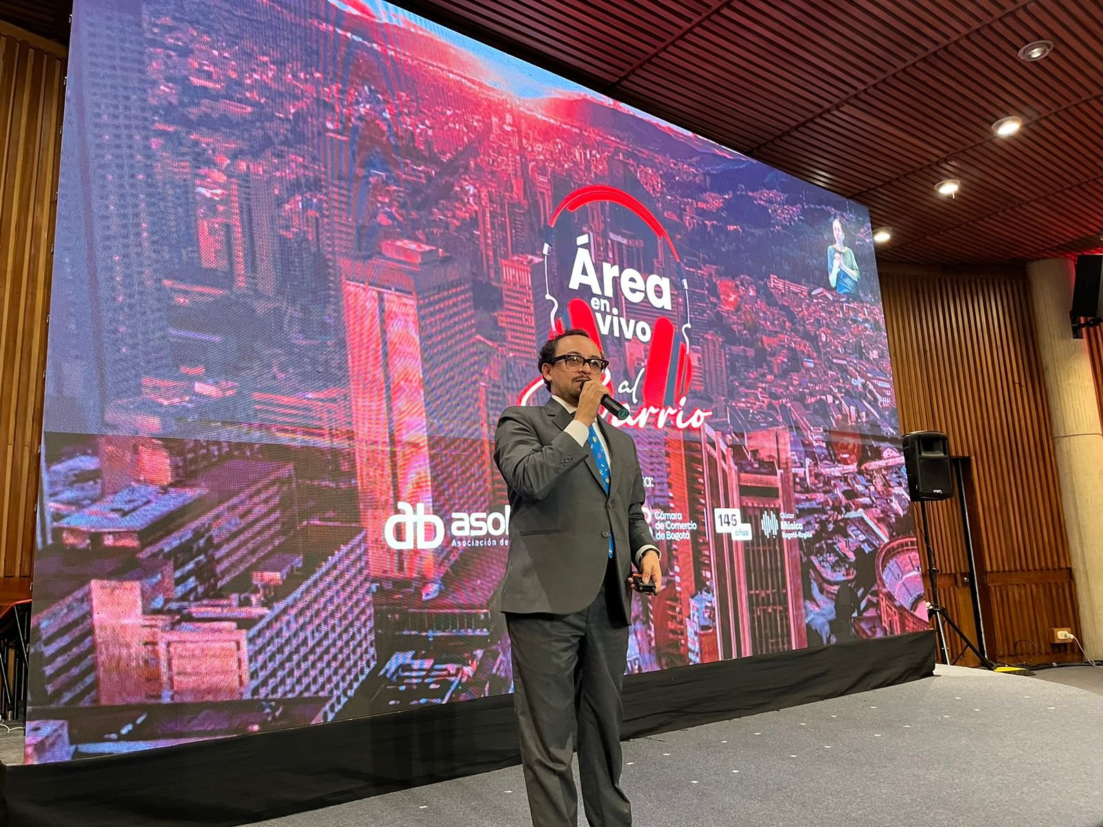 Presentes en el Concejo ampliado de la Cámara de Comercio de Bogotá con la Participación de nuestro presidente Camilo Ospina en el Panel de Apuestas y procesos de construcción de cosistemas al rededor de la música moderado por Camilo Foseca Director de Macrosector industrias culturales y creativas CCB.