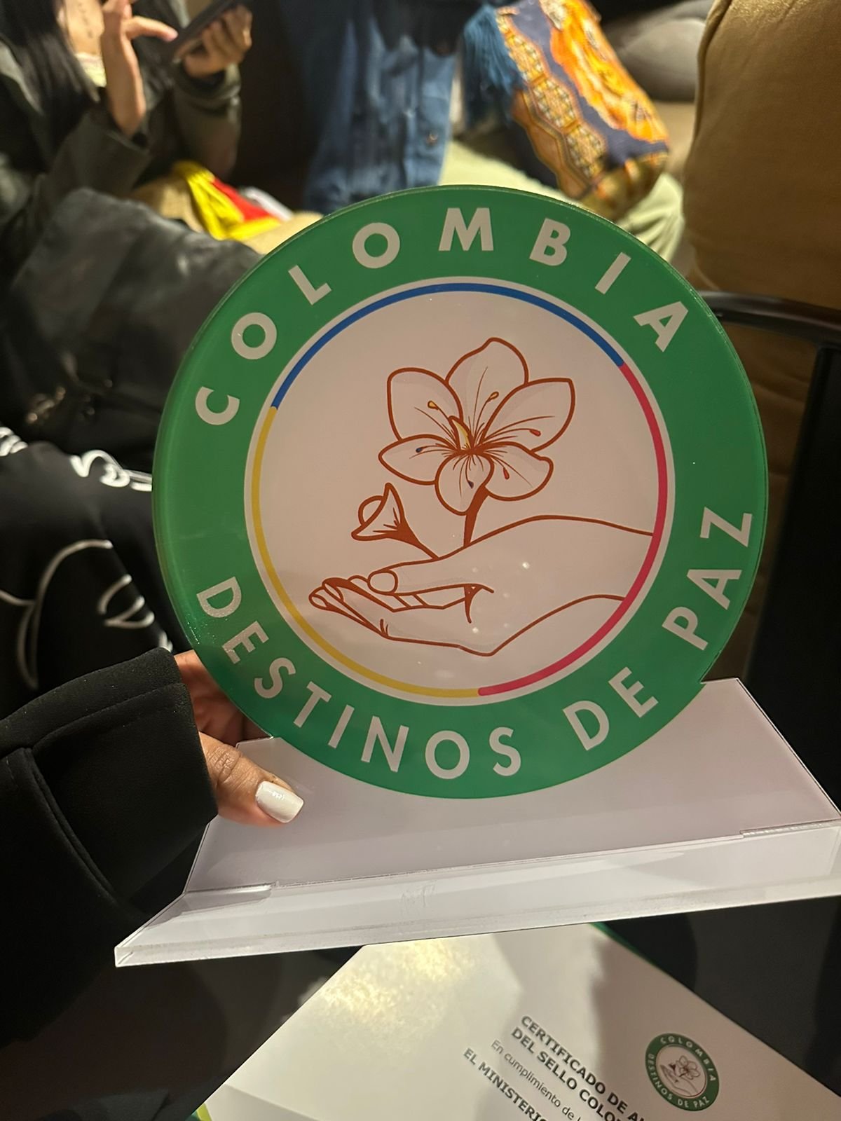 En las instalaciones del ministerio de comercio, de manos del Viceministro Arturo Bravo y del Gerente de Fontur Álvaro Balcázar, nuestro afiliado y#50 del mundo La Pergola Clandestina de Cali recibe el sello “Colombia, destinos de paz” por su labor social